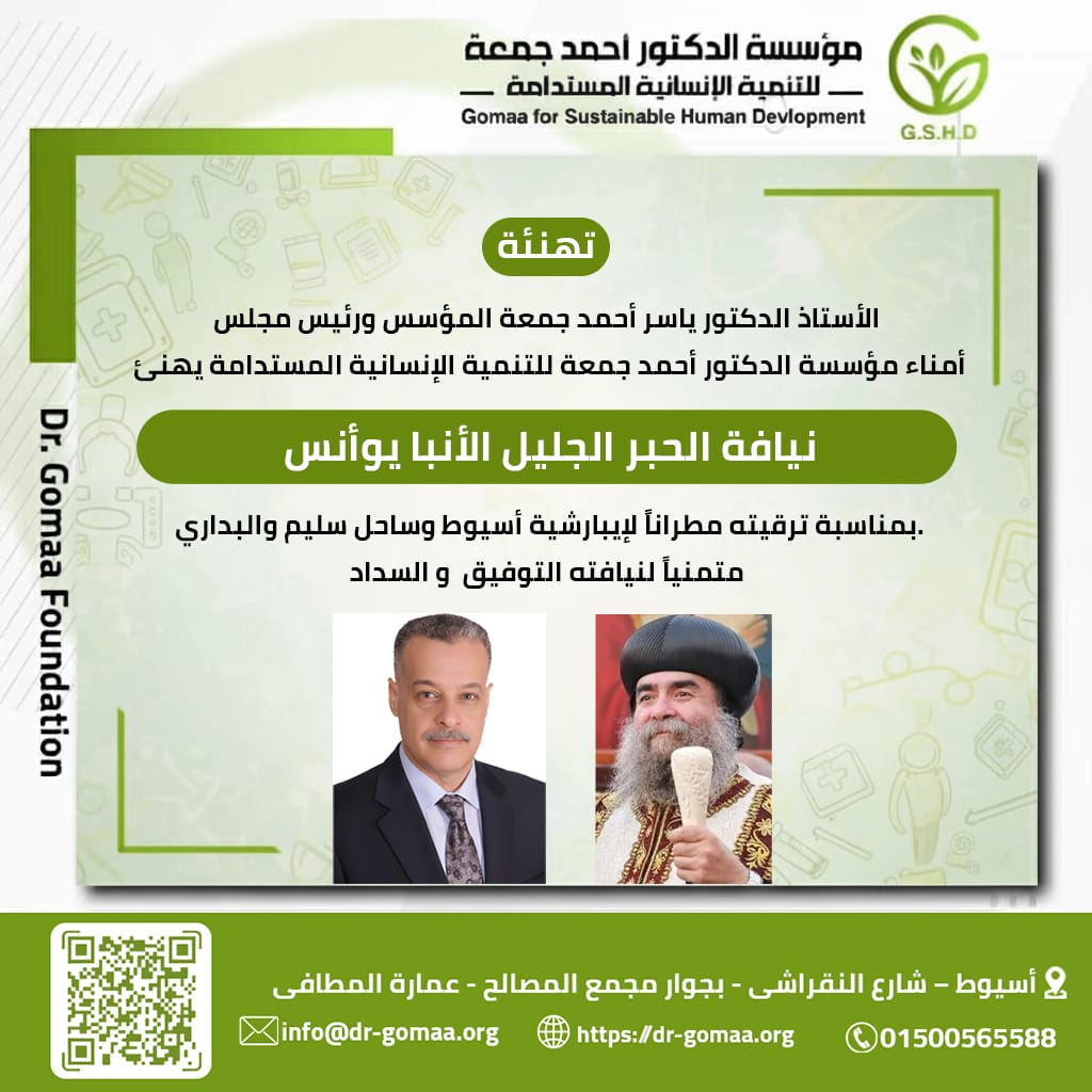 مؤسسة الدكتور احمد جمعة للتنمية الانسانية المستدامة - مؤسسة أهلية غير هادفة للربح مشهرة برقم( 1934) لسنة ( 2023)،
