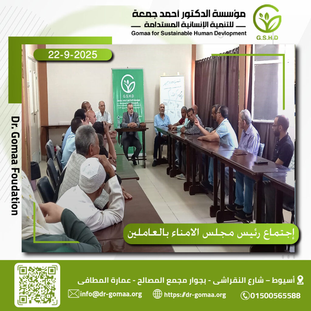 ترأس الأستاذ الدكتور ياسر أحمد جمعة، رئيس مجلس أمناء مؤسسة الدكتور أحمد جمعة للتنمية الانسانية المستدامة ، اجتماعاً موسعا ً بالعاملين بمركزى الشامل للتأهيل ” بنين ” بمركز الفتح ومركز العلاج الطبيعى بحى غرب ، لمتابعة خطة العمل وتوزيع المهام الوظيفية على العاملين بعد خطة الهيكلة بالمركزين والوقوف على أخر مستجدات اعمال التطوير الشامل ورفع كفاءة المركزين ومصنع الاطراف الصناعية والاجهزة التعويضية والورش التابعة له .