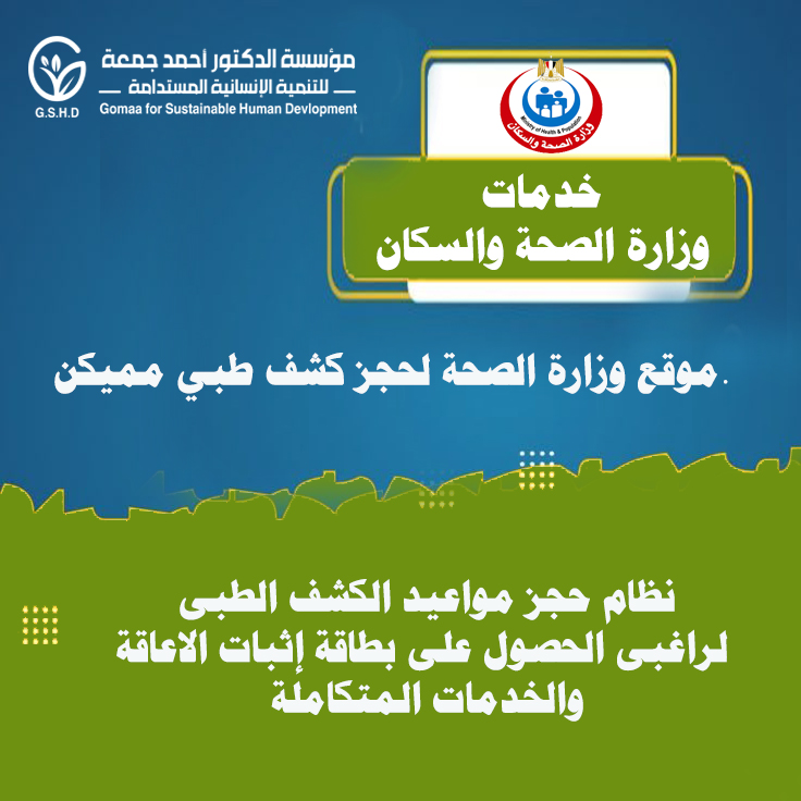 موقع وزارة الصحة والسكان .. نظام حجز مواعيد الكشف الطبى لراغبى الحصول على بطاقة إثبات الاعاقة والخدمات المتكاملة